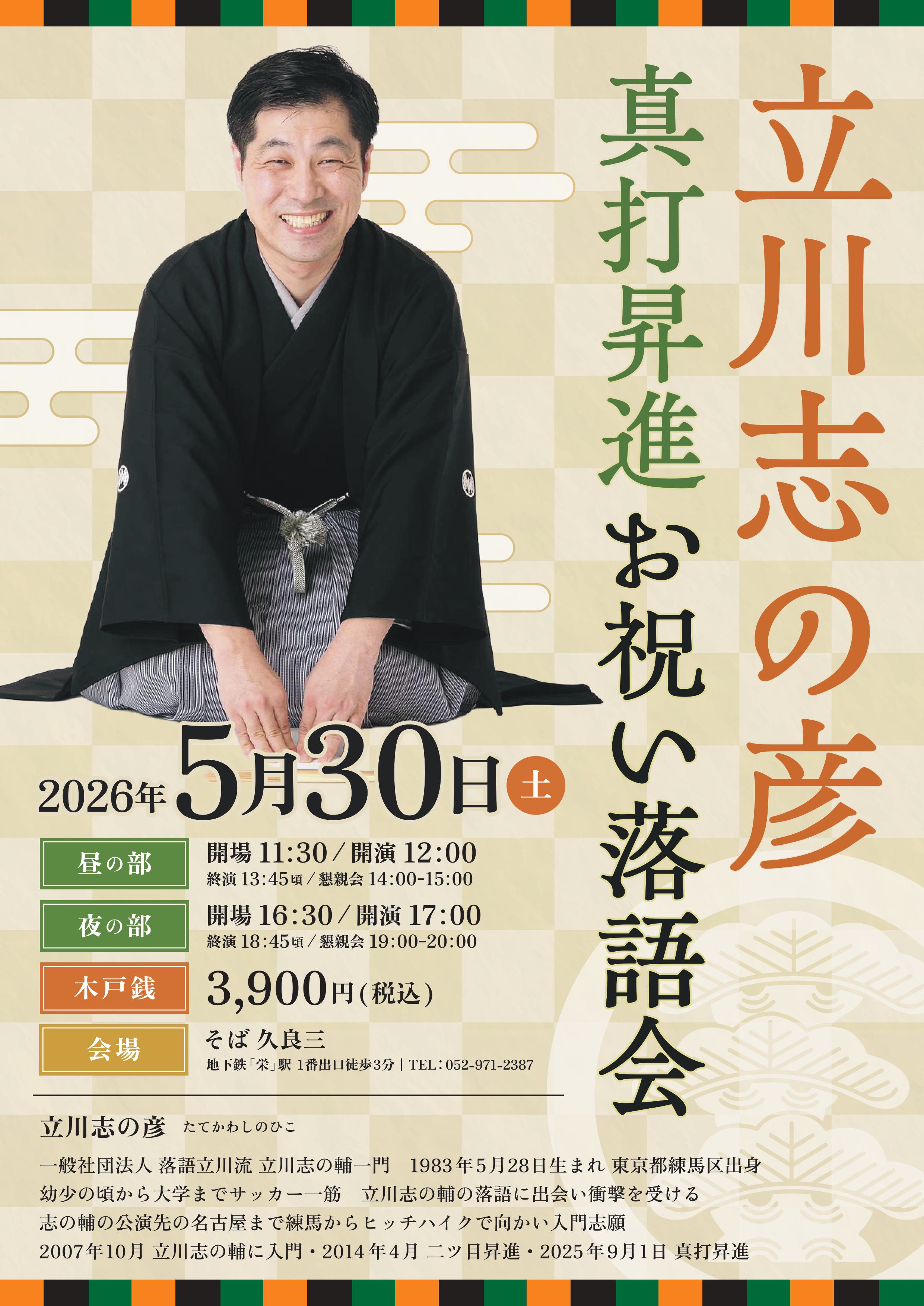 お世話になっている名古屋のお蕎麦屋「久良三」さんで落語会